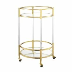 The French Country Three-Tier Butcher Block Kitchen Cart with Drawers by Convenience Concepts is the perfect addition to any transitional kitchen space. Providing functionality and efficiency for everyday tasks, this traditional unit is sure to become a staple in your home. The smooth butcher block countertop is an ideal efficient food prep station, and the stainless steel towel rack allows for easy cleaning. Two additional shelves and two spacious drawers on smooth ball-bearing slides offer all the storage one may need. The middle shelf is slatted, creating the perfect space to store wine bottles or other kitchenware, as well. This portable cart is the perfect mobile storage space, thanks to the 360-degree swivel caster wheels, two of which are locking. Beautiful turned legs and the butcher block top are engineered of rubberwood to ensure long-term durability. This finely crafted piece is perfect for small kitchens, apartments, and anywhere you need a little extra storage or kitchen prep space. Available in multiple finishes, you are sure to find a French Country Three-Tier Butcher Block Kitchen Cart with Drawers by Convenience Concepts to match your current existing interiors. Please note this cart is not intended to be used as a cutting board.