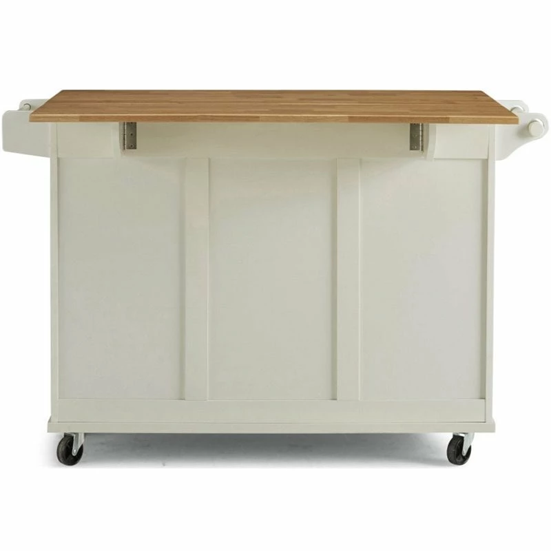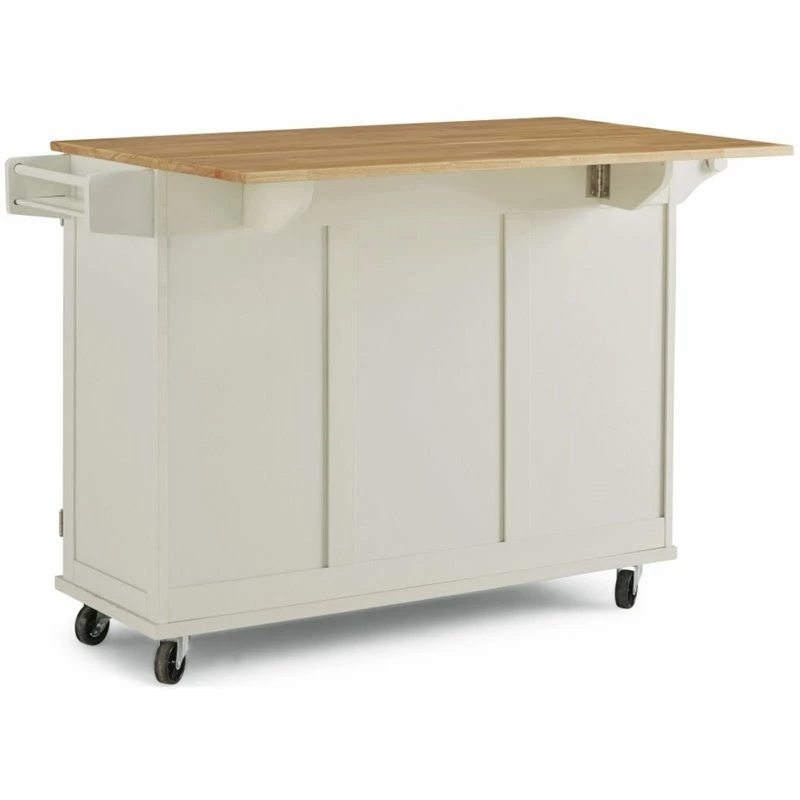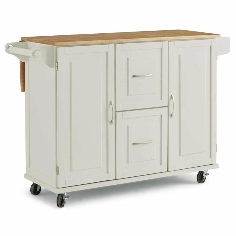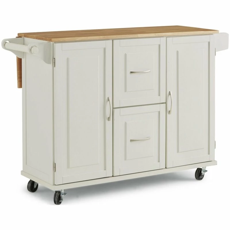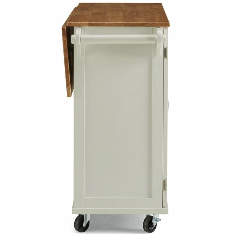 Maximize worksurface area and storage space in your kitchen with this Dolly Madison Kitchen Cart by Homestyles. The hardwood surface with drop leaf sits atop a durable engineered wood frame, which can be easily moved throughout your space on lockable casters to bring the convenience right where it’s needed most. Loaded with space-saving features and storage options, it brings the ultimate in versatility and charm to your kitchen.