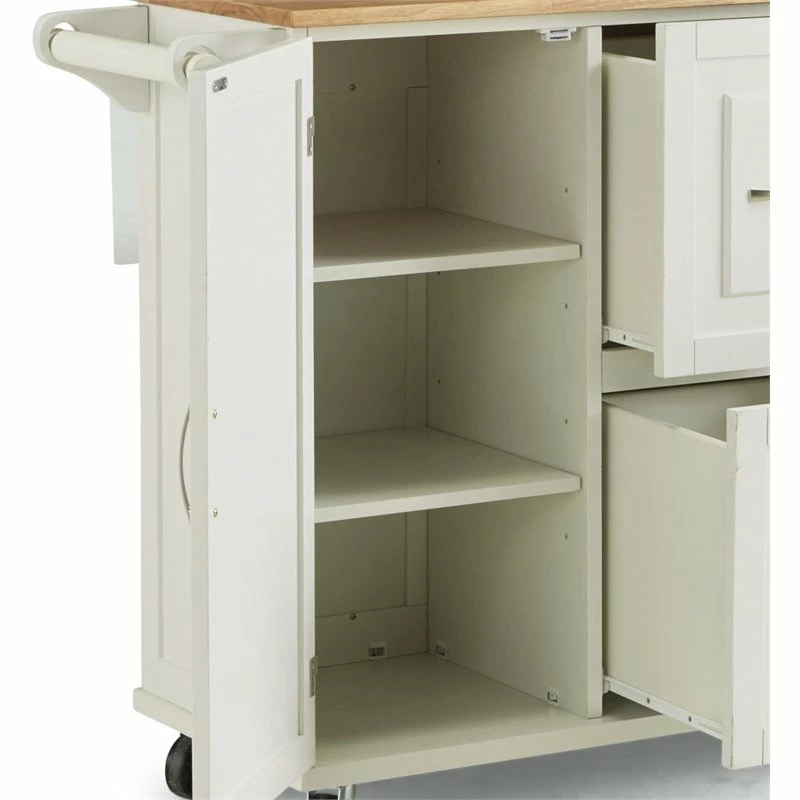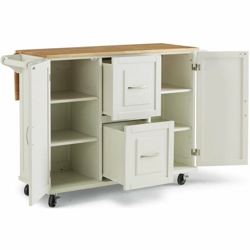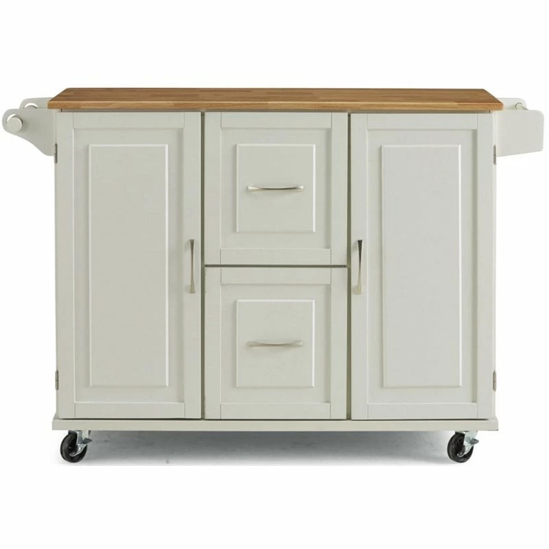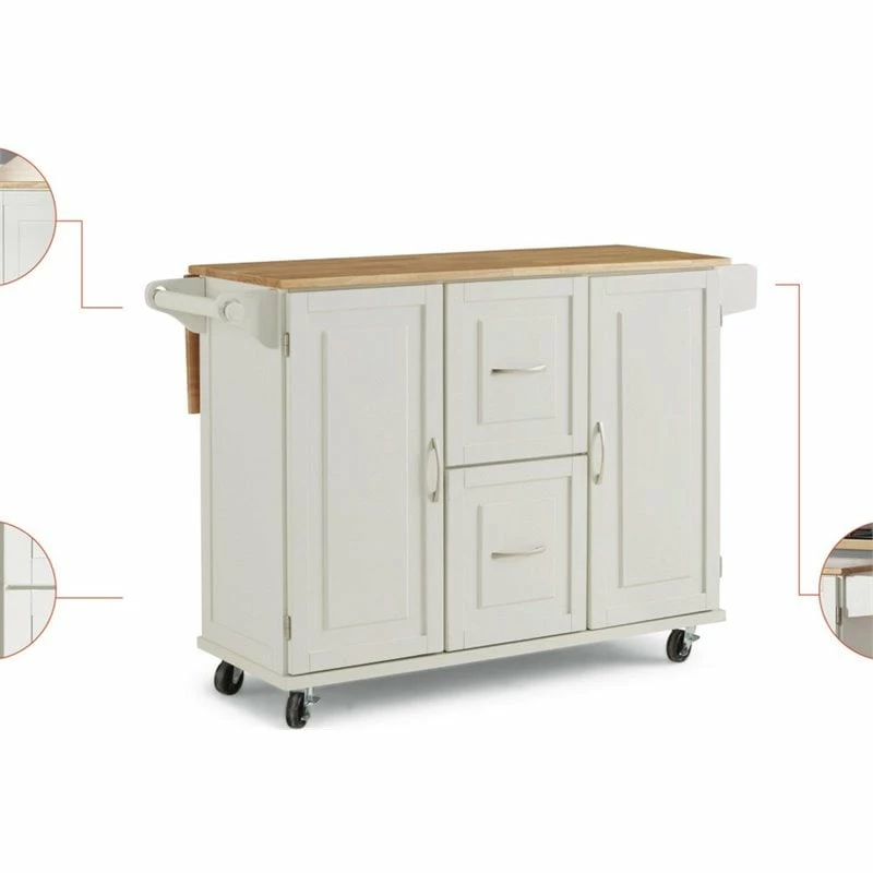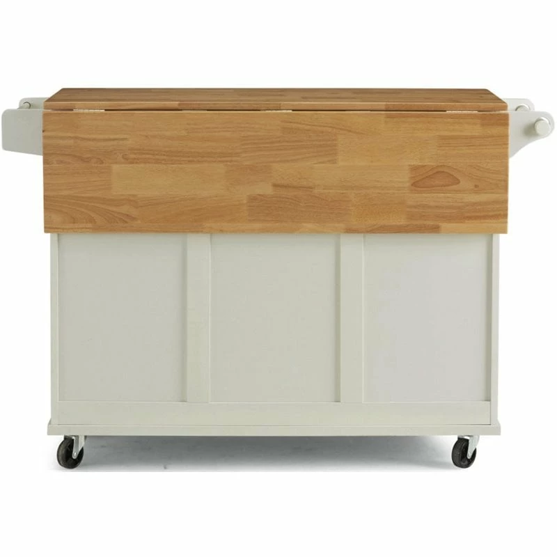 Maximize worksurface area and storage space in your kitchen with this Dolly Madison Kitchen Cart by Homestyles. The hardwood surface with drop leaf sits atop a durable engineered wood frame, which can be easily moved throughout your space on lockable casters to bring the convenience right where it’s needed most. Loaded with space-saving features and storage options, it brings the ultimate in versatility and charm to your kitchen.