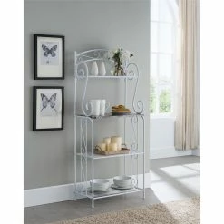 Best Pirce 🥰 Pilaster Designs Destin 4-tier Metal Freestanding Kitchen Bakers Rack In White 🔔